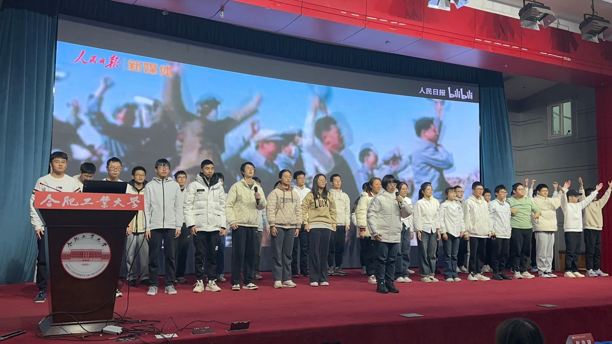 文化展演环节分为“熠气风发”“熠往无前”“熠彩纷呈”三个篇章,赞美青春挺膺担当的信心、爱国荣校的情怀和激昂向上的精神风貌,打造将信仰与美育相结合、家国情怀与成长成才相结合的展演,演绎出青年大学生生逢其时的斗志昂扬,使命在肩的时不我待。